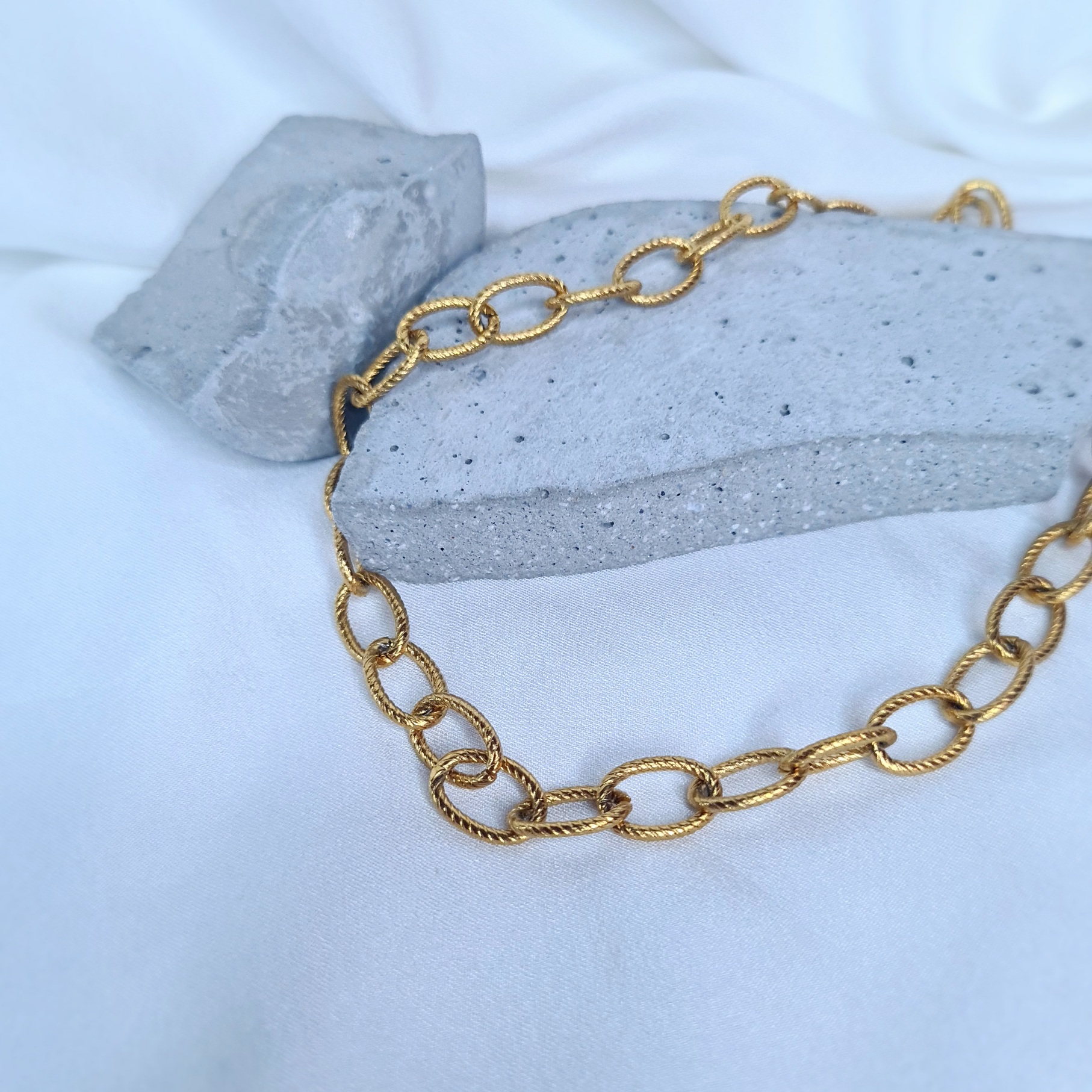 • Χρυσή αλυσίδα με ματ όψη και διακριτικό σχέδιο. Φτιάχνεται κατά παραγγελία σε κολιέ, βραχιόλι ή σετάκι!