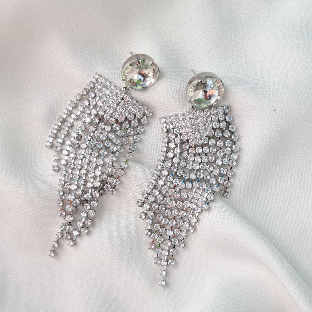 • Καρφωτά κρυστάλλινα σκουλαρίκια με στρας κρεμαστά. Ιδανικά για εξόδους και ειδικές περιστάσεις όπως καλεσμένη σε γάμο κλπ.