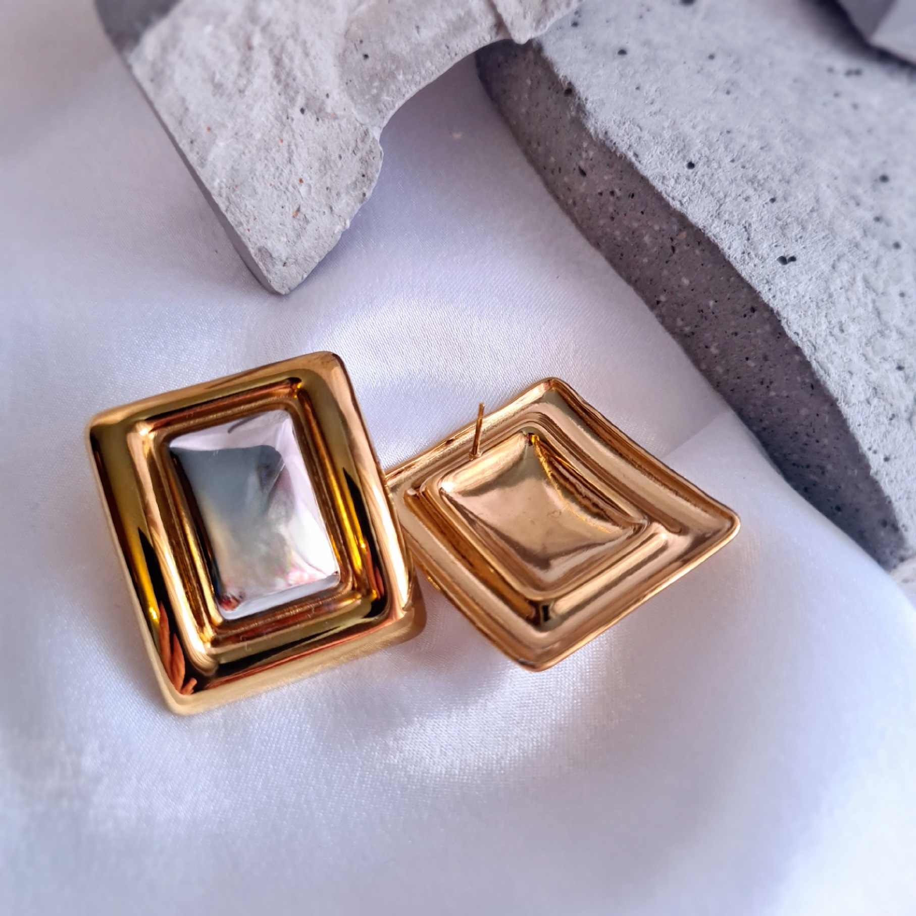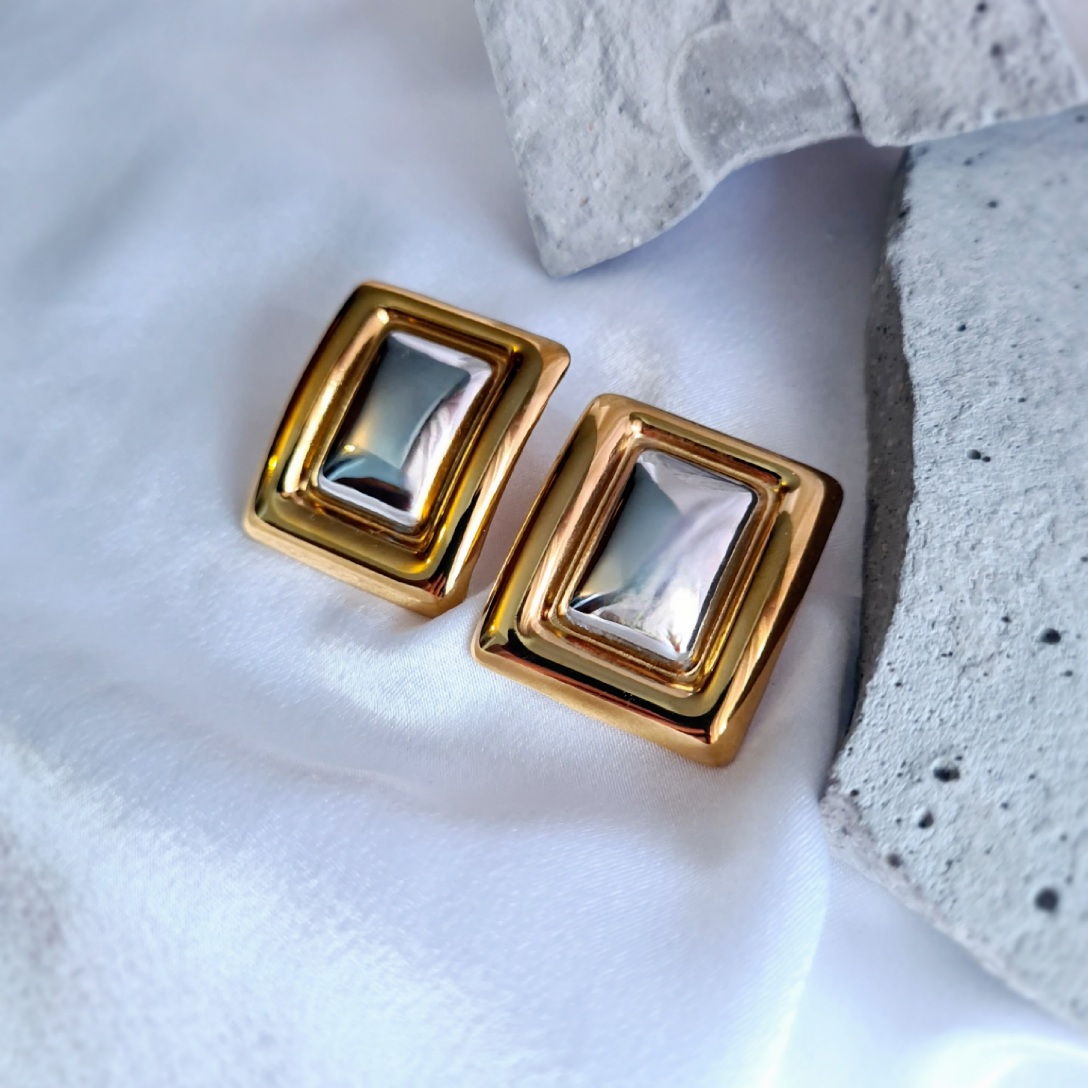 • Καρφωτά σκουλαρίκια με μιξ χρώμα μετάλλων σε τετράγωνο σχήμα.