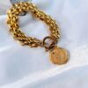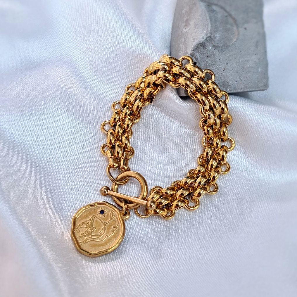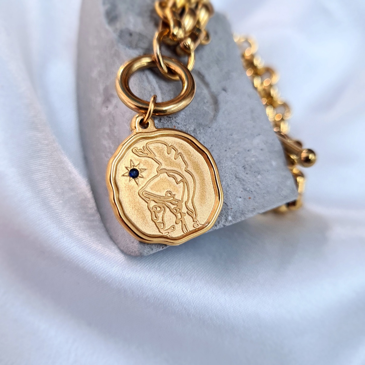 • Βραχιόλι χειροποίητο, από χοντρή χρυσή ατσάλινη αλυσίδα με ατσάλινο στοιχείο την Θεά Αθηνά!